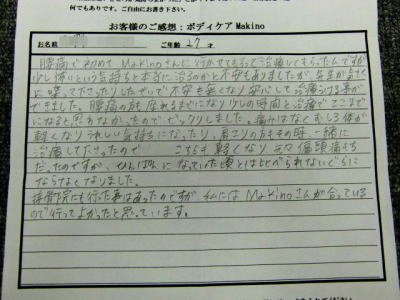 腰痛で初めてMakinoさんに行かせてもらって治療してもらったんですが、